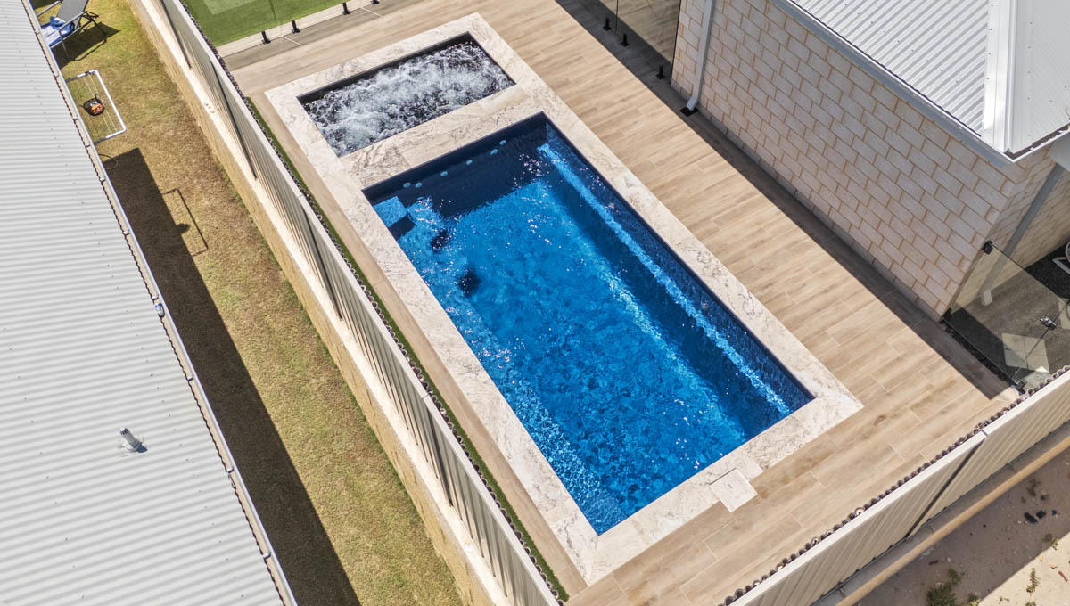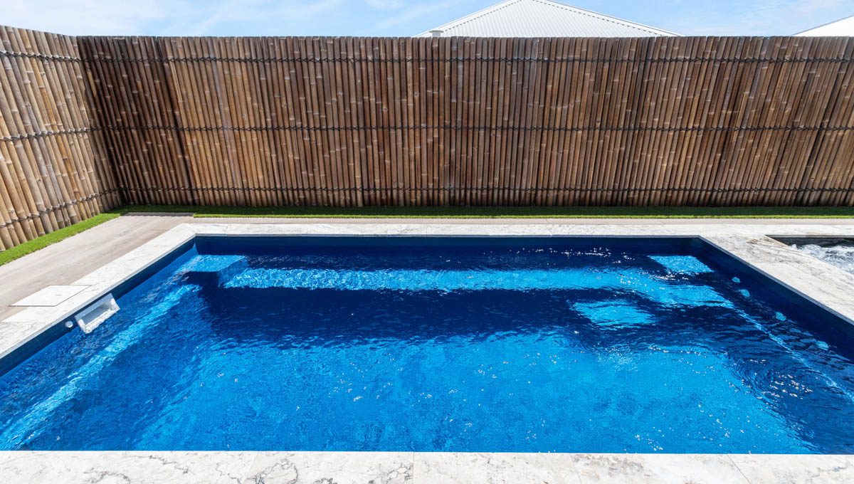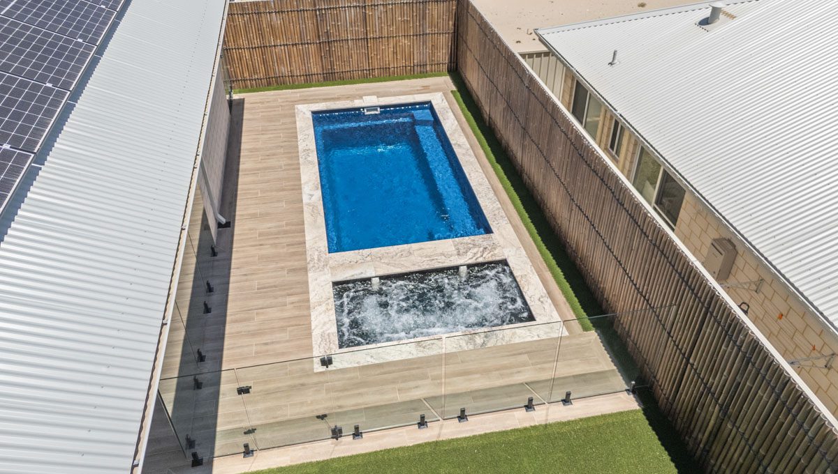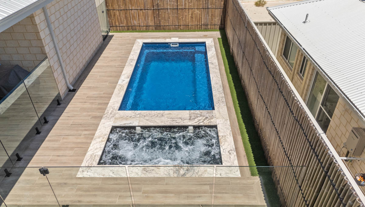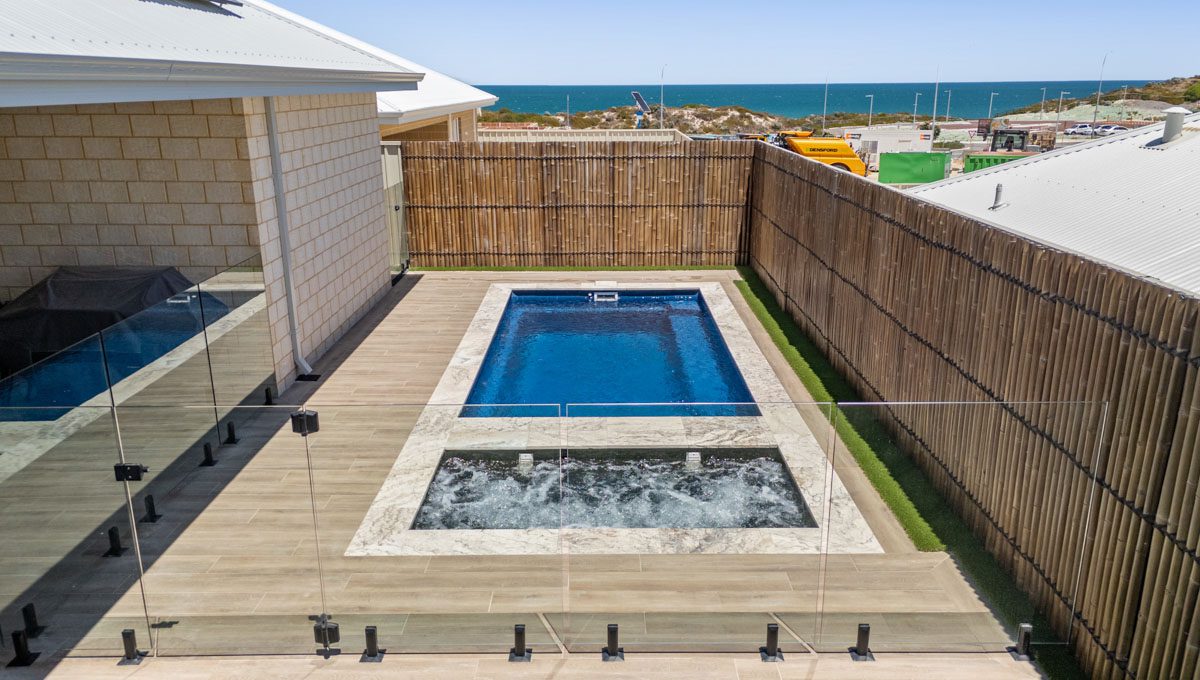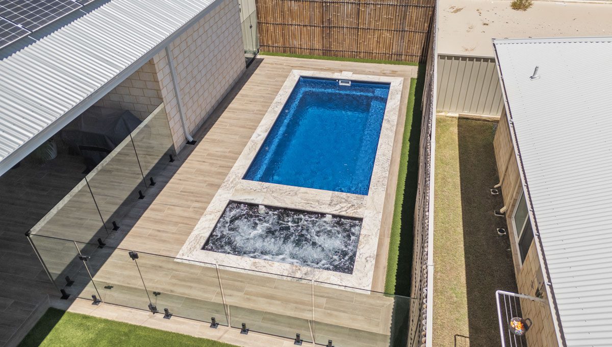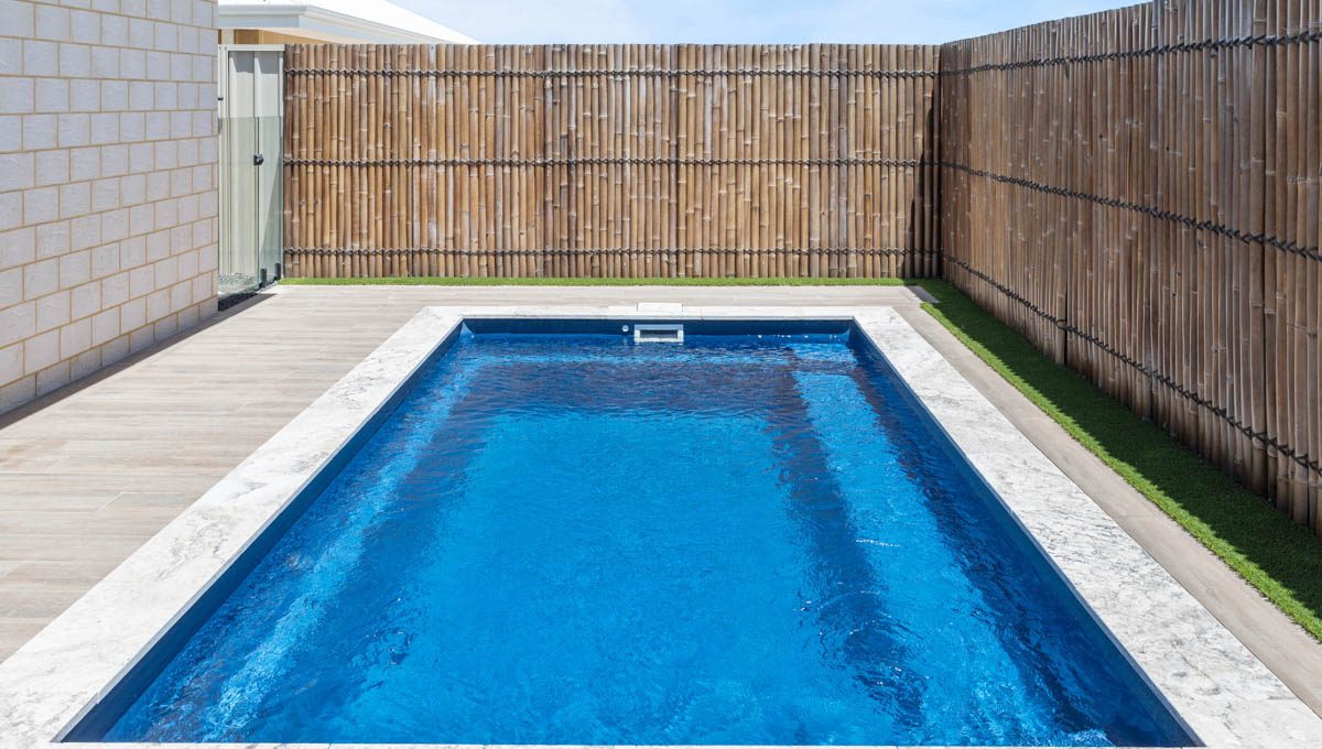 This compact 5.2m x 2.8m Caprice Slimline pool in Royal Ocean Shimmer is a stylish and space-saving addition to this Yanchep backyard. Ideal for smaller outdoor areas, it offers the perfect spot for cooling off, relaxing, or enjoying a quick dip. The Royal Ocean Shimmer finish gives the water a deep, vibrant hue, adding a bold touch to the modern design. Smart, sleek, and low-maintenance, this pool is a great fit for coastal living in Yanchep.