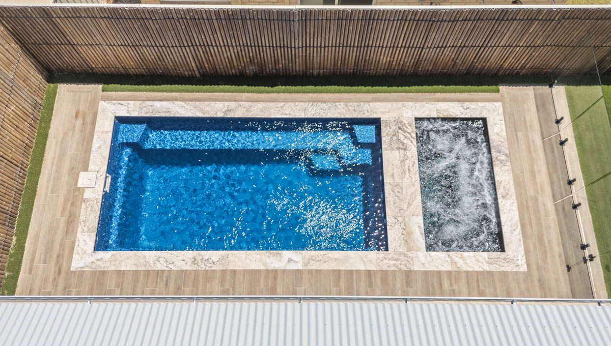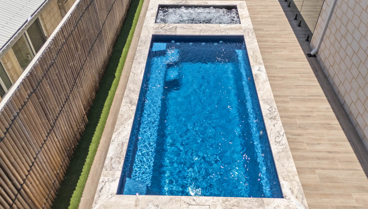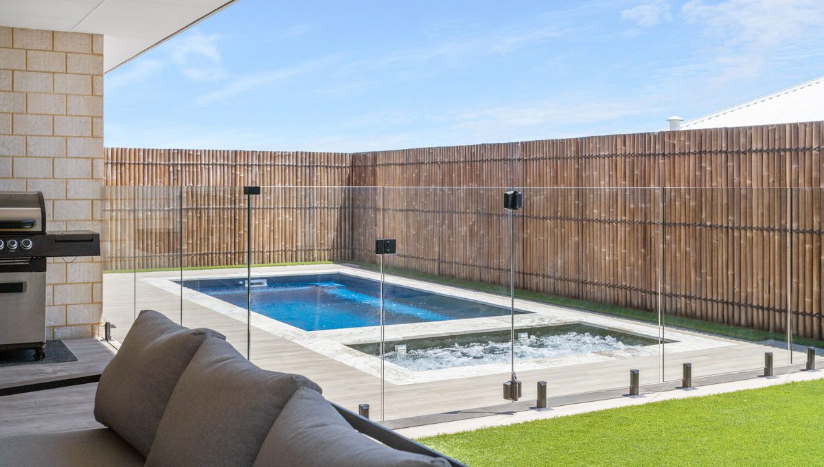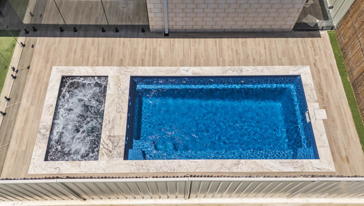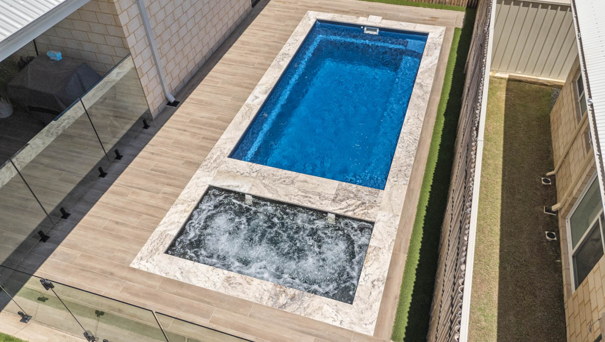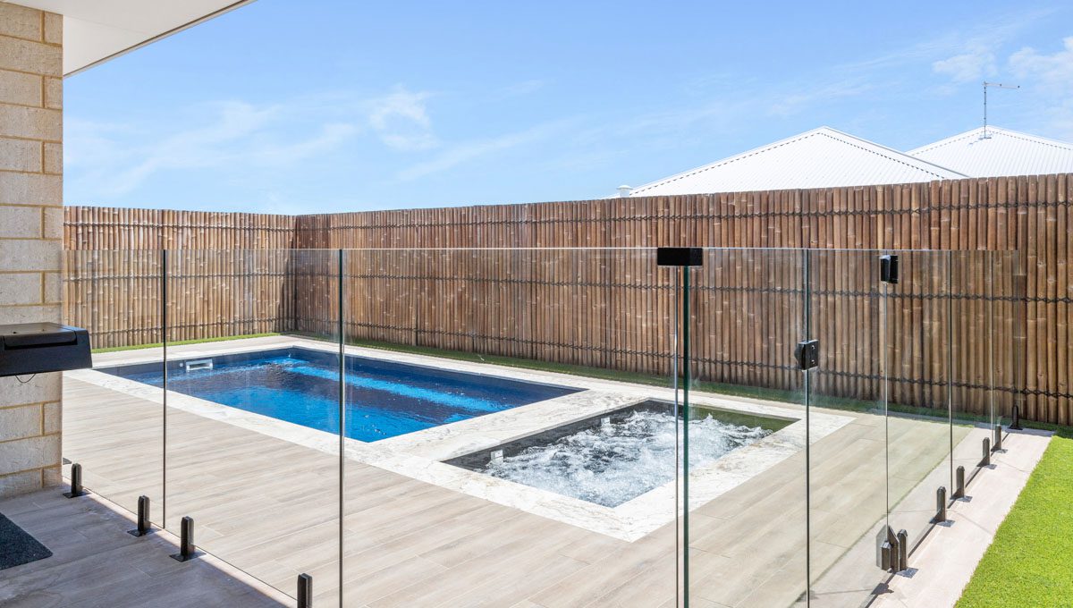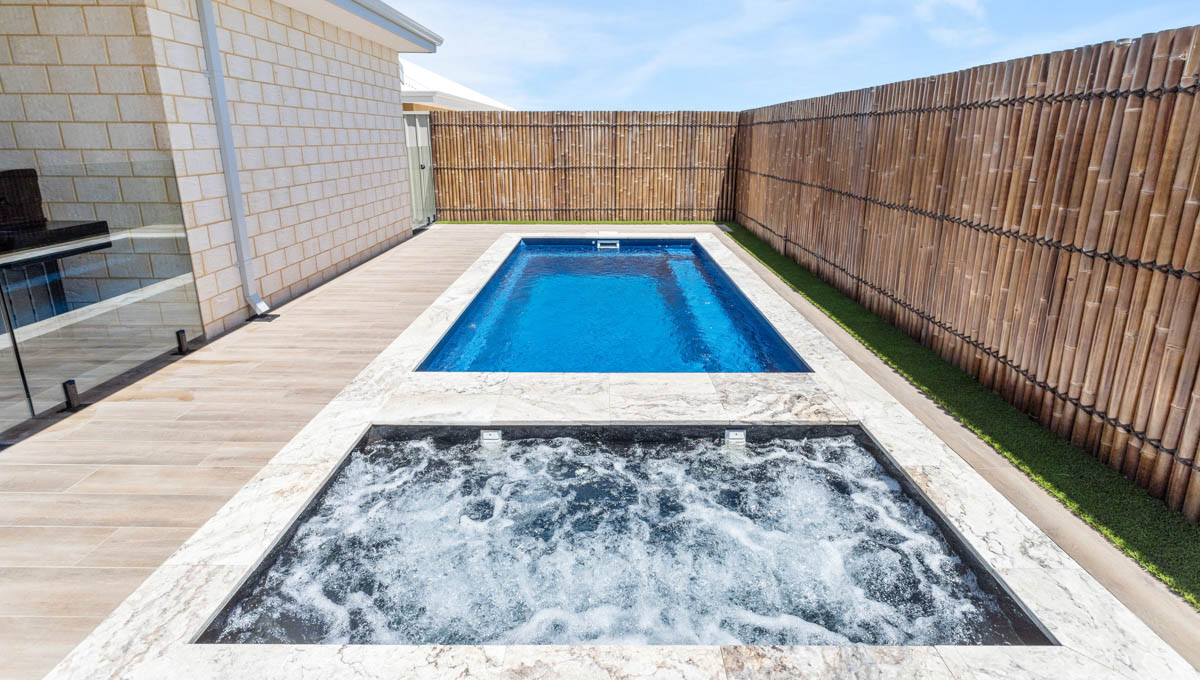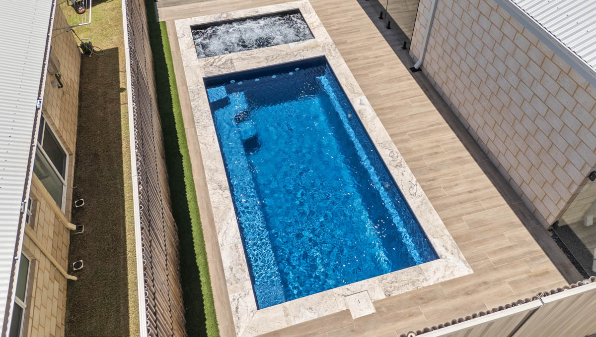This compact 5.2m x 2.8m Caprice Slimline pool in Royal Ocean Shimmer is a stylish and space-saving addition to this Yanchep backyard. Ideal for smaller outdoor areas, it offers the perfect spot for cooling off, relaxing, or enjoying a quick dip. The Royal Ocean Shimmer finish gives the water a deep, vibrant hue, adding a bold touch to the modern design. Smart, sleek, and low-maintenance, this pool is a great fit for coastal living in Yanchep.