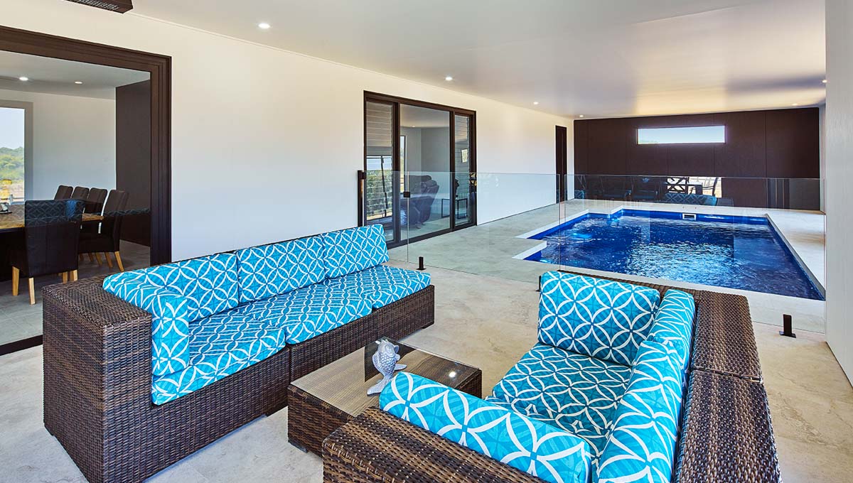 This 9.5m x 4.4m Majestic pool in Ocean Shimmer transforms this Wanerie property into a private oasis. With its expansive size and elegant curves, it’s perfect for both swimming and entertaining. The Ocean Shimmer finish gives the water a deep, vibrant blue tone that mirrors the beauty of the coast, creating a serene and luxurious feel. Designed for relaxed outdoor living, this pool offers a perfect balance of style, comfort, and functionality in a natural setting.