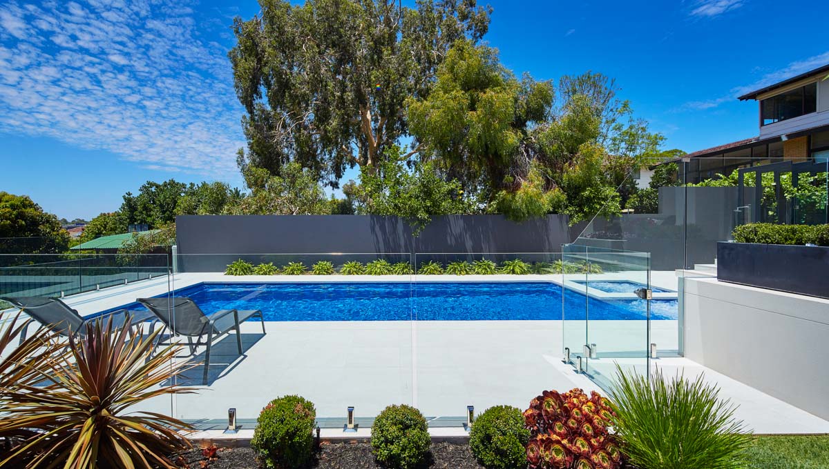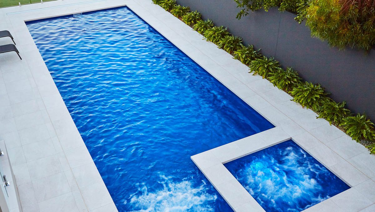 View our gallery of our 12.2m x 4.4m Manhattan in our Ocean Shimmer colour. This fibreglass pool was installed at Mount Pleasant.