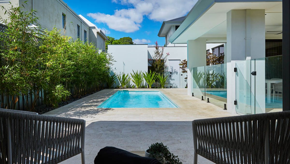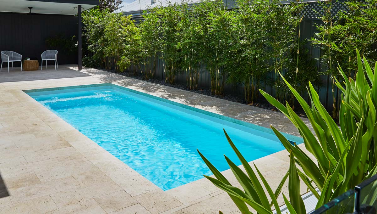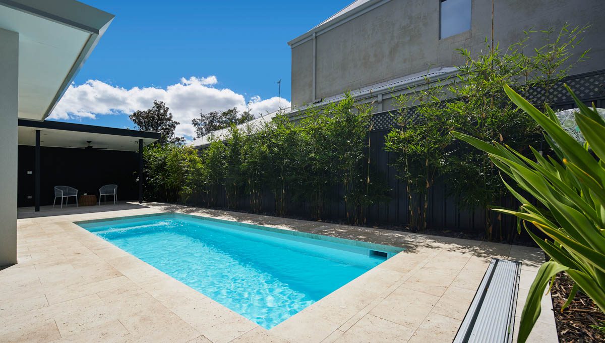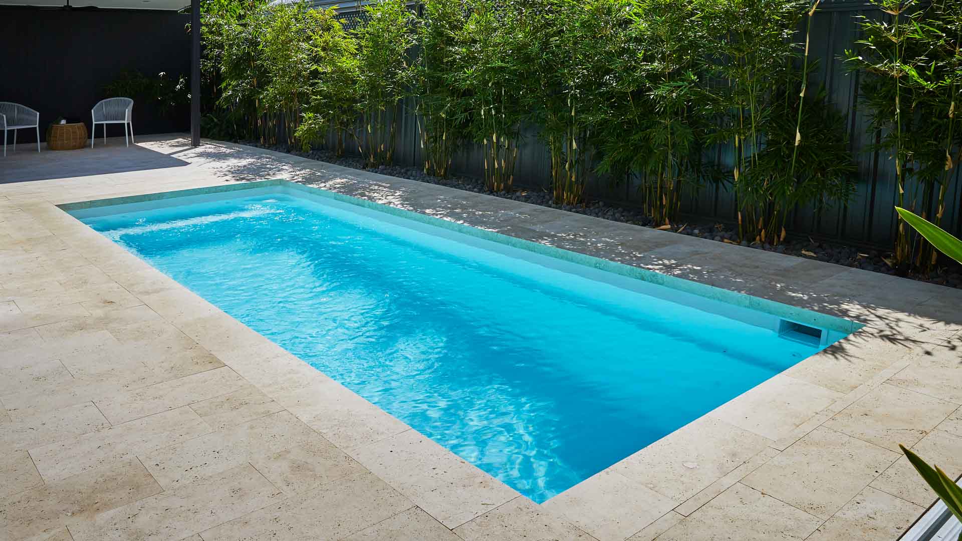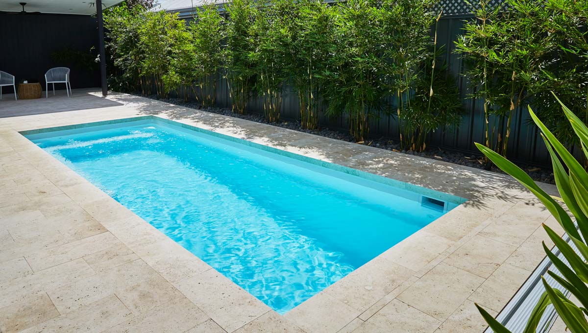 The Monaco Slimline 7.2m version was installed at a home in Mount Pleasant, with the owners selecting our Alpine White Shimmer colour for the pool. Paired with light paving, the pool is now the highlight of the backyard, significantly boosting its visual appeal.