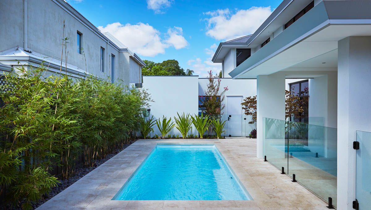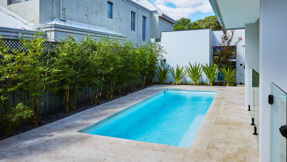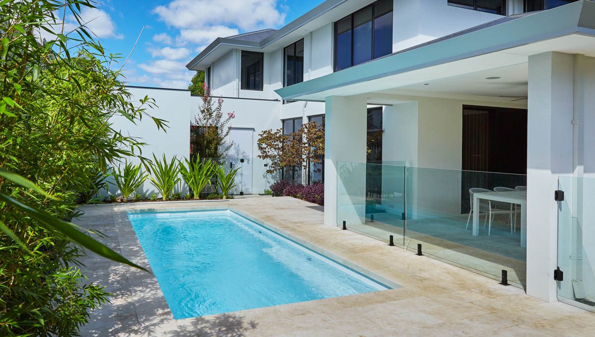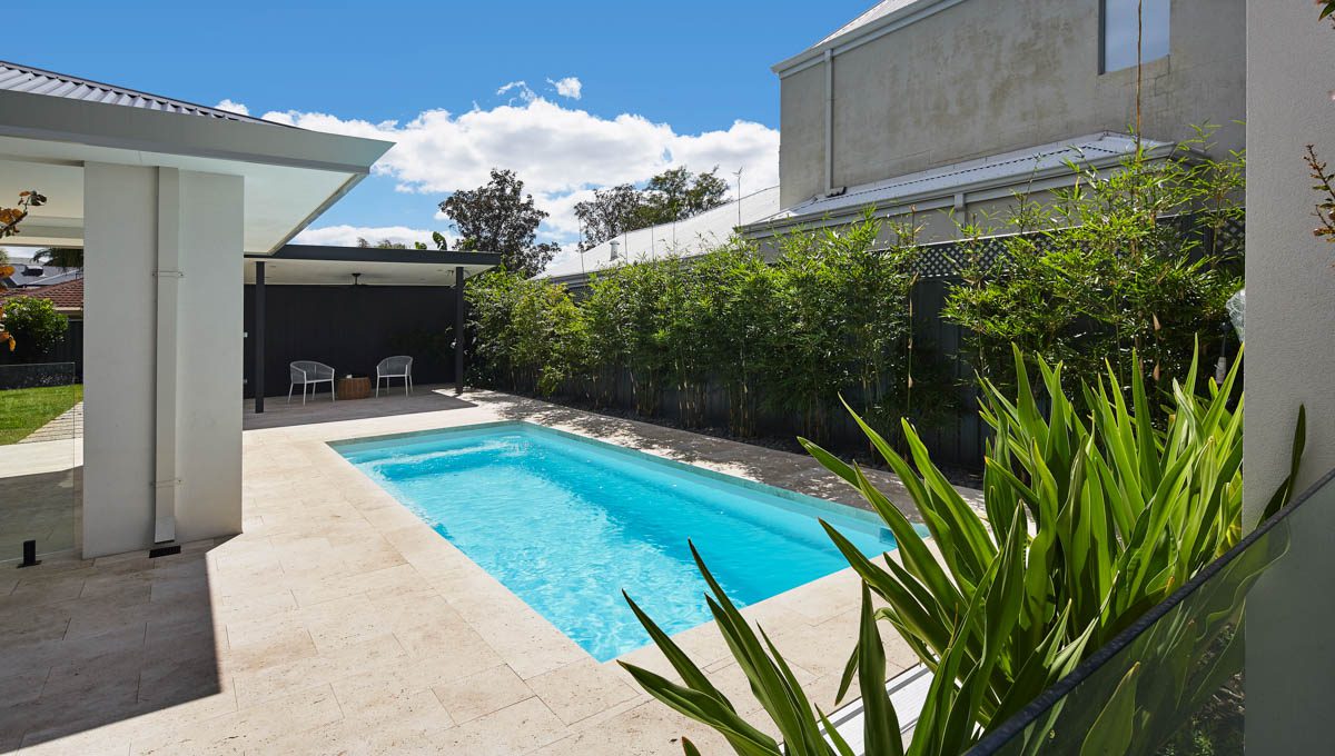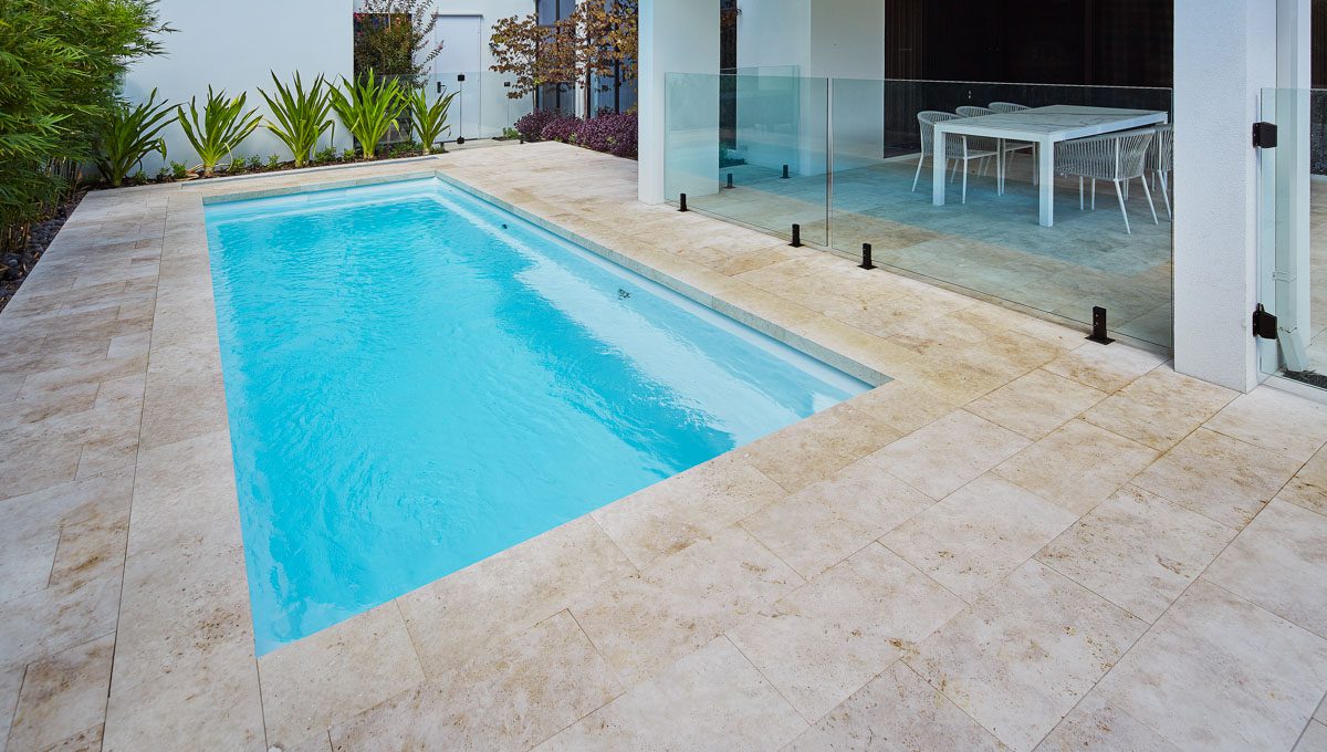 The Monaco Slimline 7.2m version was installed at a home in Mount Pleasant, with the owners selecting our Alpine White Shimmer colour for the pool. Paired with light paving, the pool is now the highlight of the backyard, significantly boosting its visual appeal.