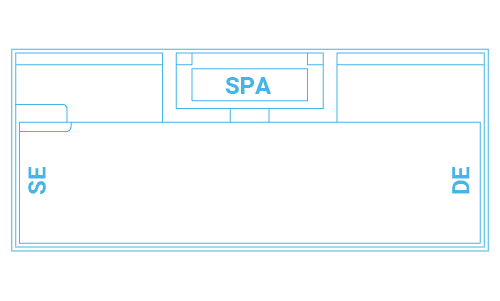 Our 12.2m Resort pool in Royal Jade Shimmer is sure to be a showstopper. You can choose to have an optional spill way from your spa into your main swimming area, or elect to have it closed off – get the best of both worlds. There are two easy entry and exit steps to this pool design, coming from two splash decks. Even the little ones can sit and watch, and stay cool!