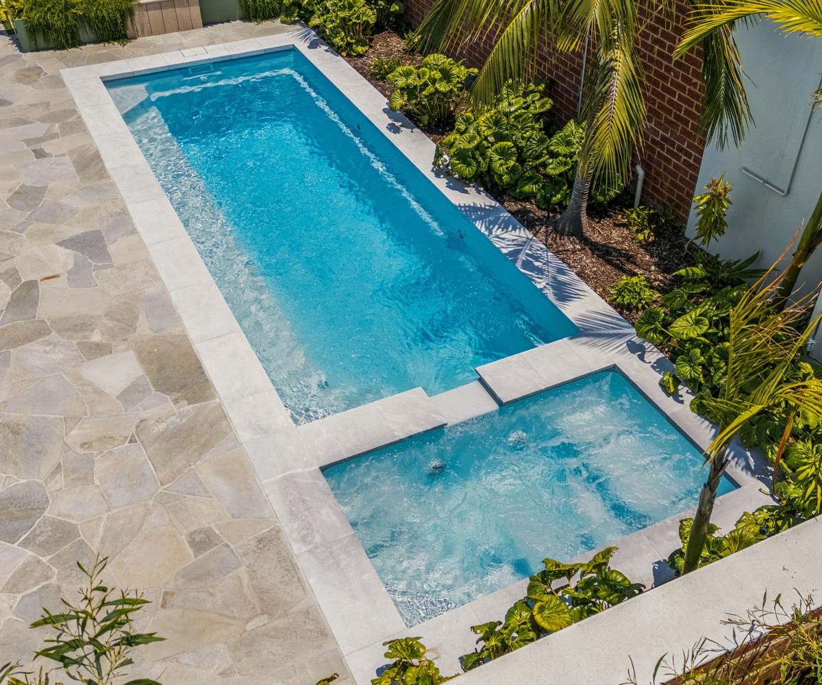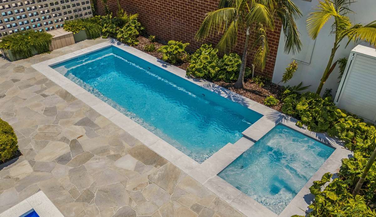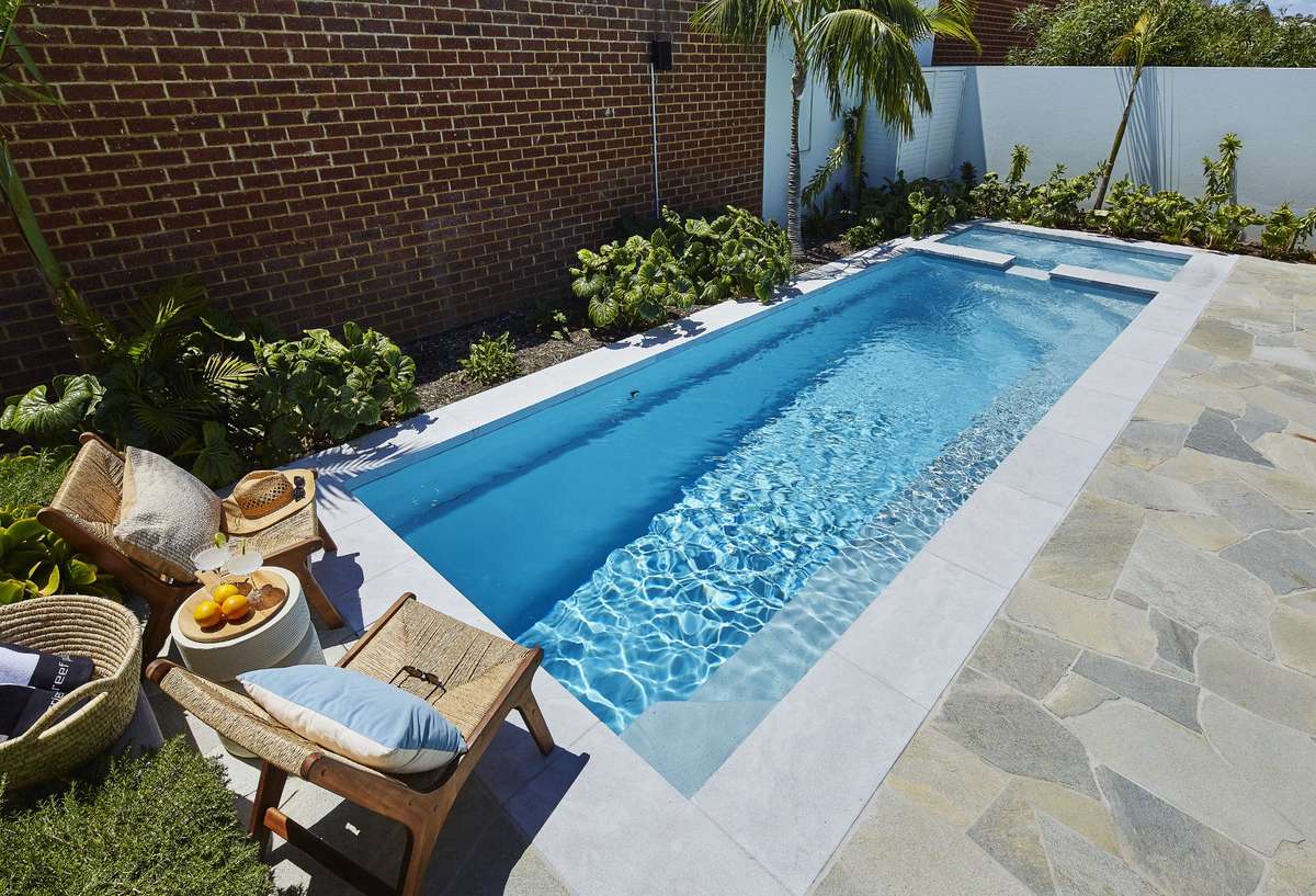 A stunning Sorrento Pool in a Silver Shimmer has been installed in Mandurah. The entry point steps down into a versatile bench seat which runs the full length of the pool creating a generous seating & kids play area all in one. Designed with a spillway the pool and spa can run simultaneously eliminating any additional power costs, alternatively they can be run independently. The generous swimming area has been designed to be totally un-obstructed, which is ideal for swimming laps and active families. There is no other pool that can offer all of these features. With its square lines and designer looks we are sure your whole family will love it.