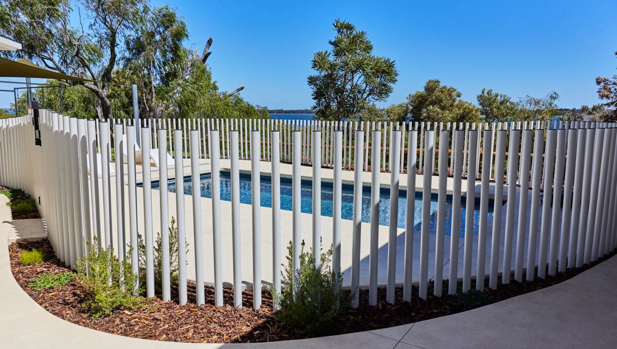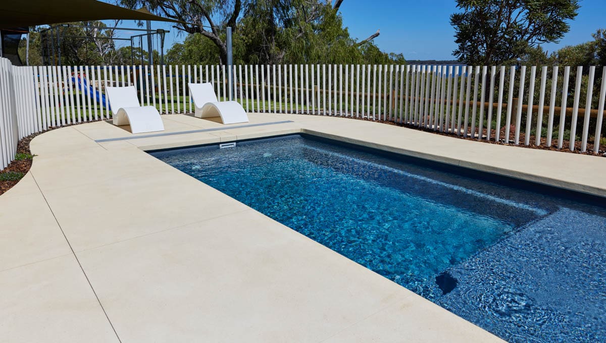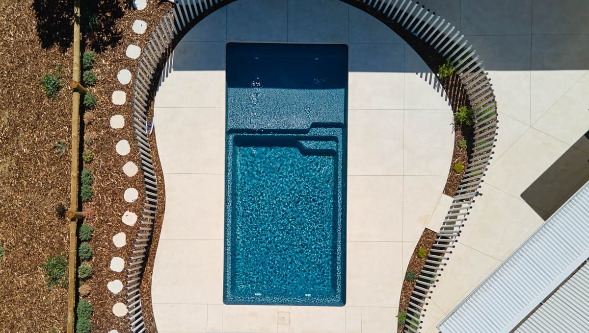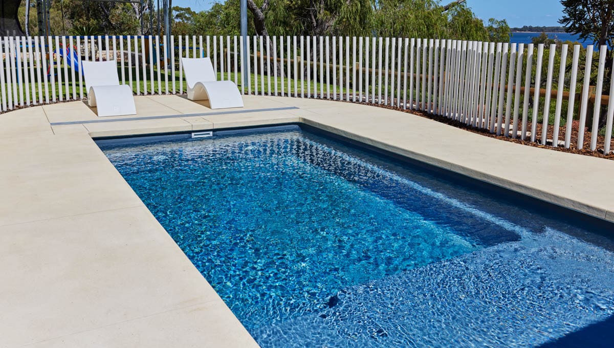 Our Sunseeker Slimline has been installed in Grosemont in our fantastic Midnight Shimmer colour! The perfect pool for lounging around and enjoying the sun, this pool offers it all. This installation has used a contemporary style fence, with numerous poles strategically placed close together to create a stunning fencing design.